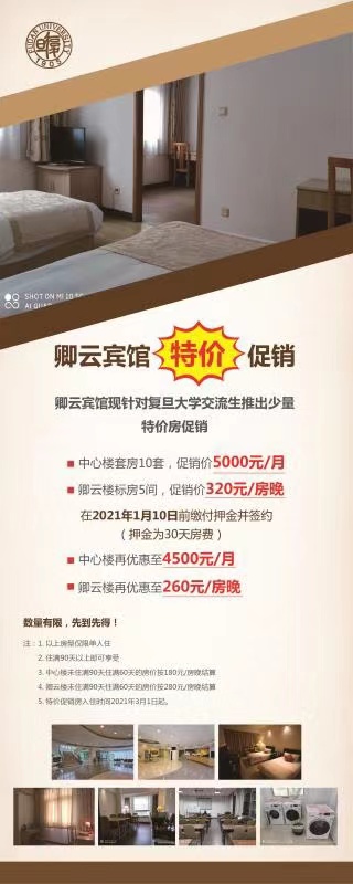 复旦大学正大卿云宾馆 特价 促销(邯郸路校区院子内)可包月,包年